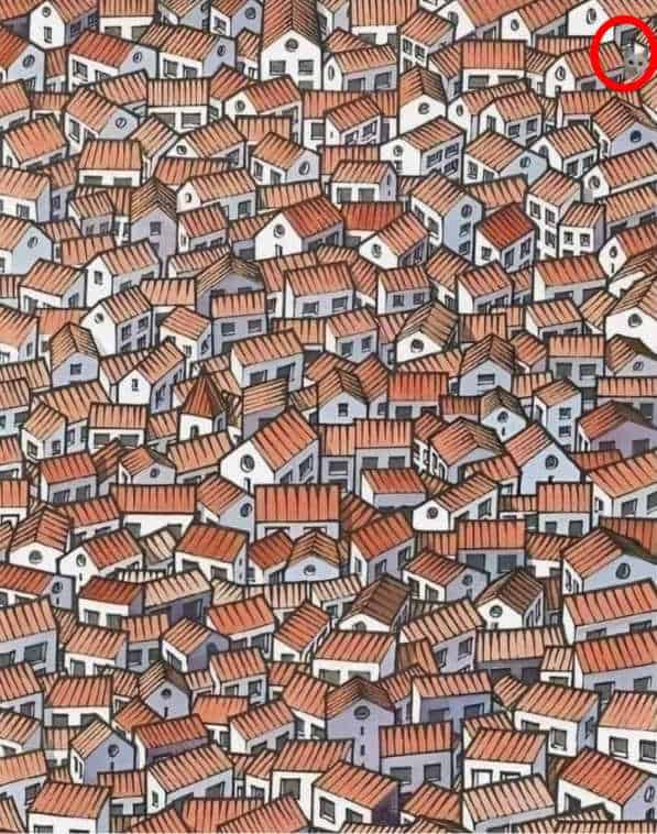 Practicing brain teasers helps in preventing cognitive decline in older age. In this picture puzzle, there is a hidden cat hidden among the row houses. The challenge for you is to find the hidden cat in 6 seconds. Can you? Let’s find out!