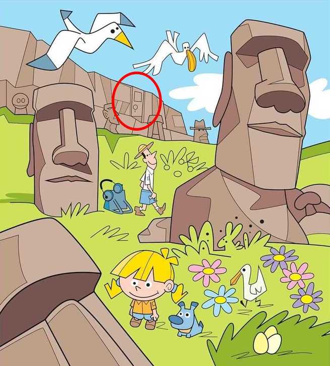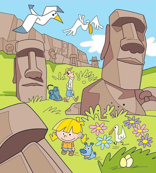 The image above depicts an Easter Island scene in which people are enjoying their field trip.