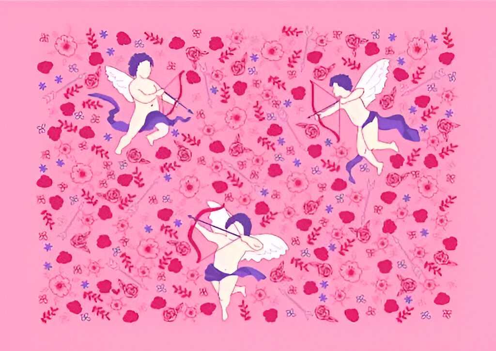The image above depicts a Valentine-themed setting in which roses and cupids can be seen.