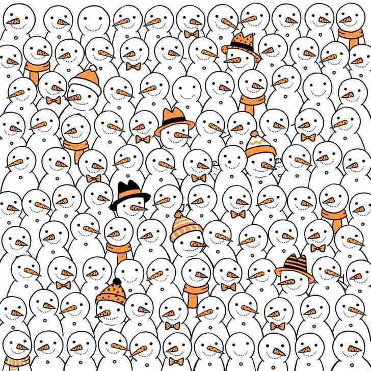 Optical Illusion: Find Five Noseless Snowmen in 9 Seconds