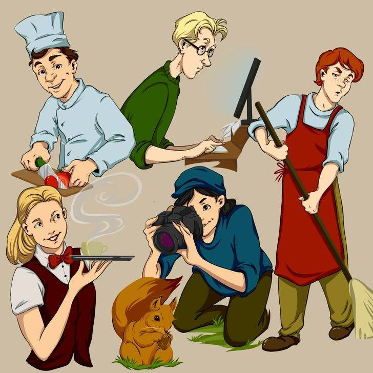 In the above image, you must decide who is the left-handed person among the five individuals and a squirrel based on their actions and situation. In the puzzle, all five individuals and a squirrel are performing different tasks. The right-handed person will perform the task with the right hand and the left-handed person will perform the task with the left hand.