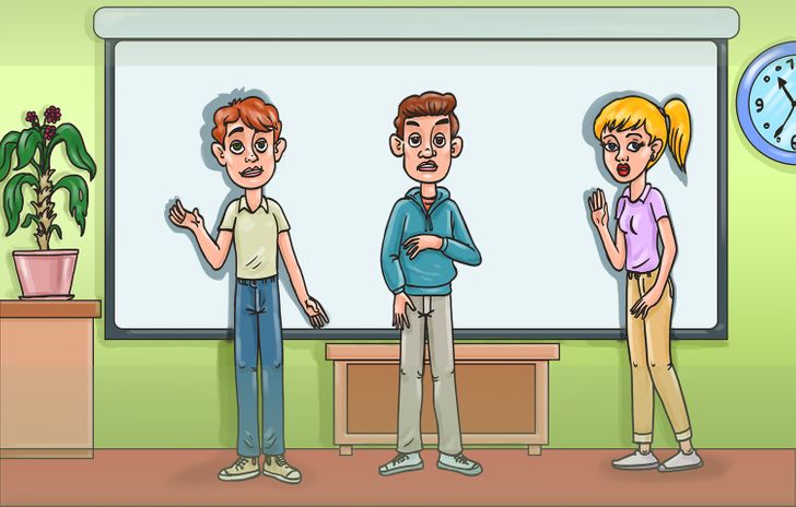 This puzzle was created as a brain teaser to test your intelligence level. In the image, you can see two boys and a girl standing in a room. Inside the room, there is a plant and a clock kept on each side of the whiteboard. However, among the three people in the room, one is not a real person. The puzzle challenges the viewers to find the ghost in the room by asking “Who is not a real person?”