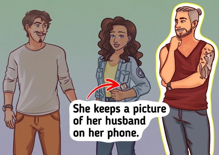 This puzzle asks you to find who is the husband of the woman among the two men. If you look carefully at the phone of the woman in the picture, then you will be able to identify the husband of the woman. She keeps a picture of her husband on her phone.