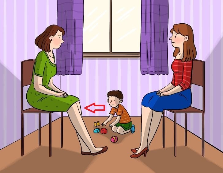 This puzzle was created as a brain teaser to test your intelligence level. In the image you can that there are two ladies in a room who are sitting opposite each other while a little boy plays on the floor. However, only one of the ladies is the real mother of the child. The puzzle challenges the viewers to find the lady who is the real mother by asking “Who do you think is the real mother of the child?”.