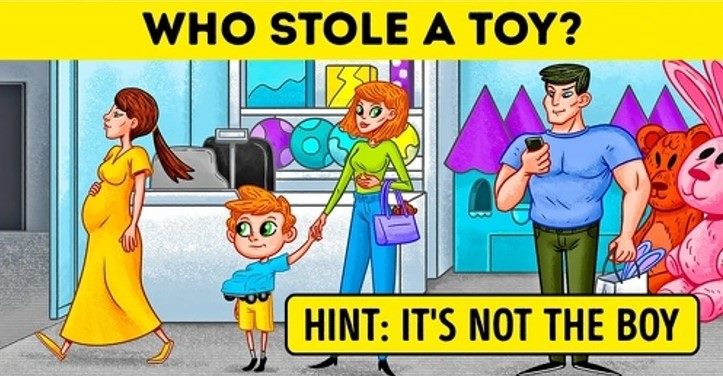 This test was created as a brain teaser to test your intelligence level. In the image, you can see the three suspects who have been questioned for the theft. A toy was stolen inside the store. The puzzle maker has already revealed that it’s not the little boy. The puzzle challenges the viewers to find the thief based on their replies by asking “Who stole the toy?”