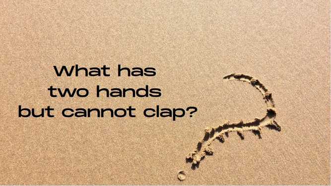 The answer to this riddle is a clock; it has two hands, the minute and the hour hand, but they cannot clap.