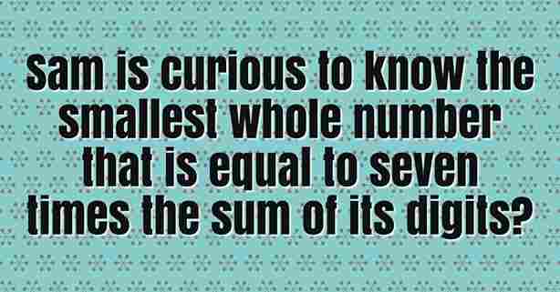Sam is curious to know the smallest whole number that is equal to seven times the sum of its digits.