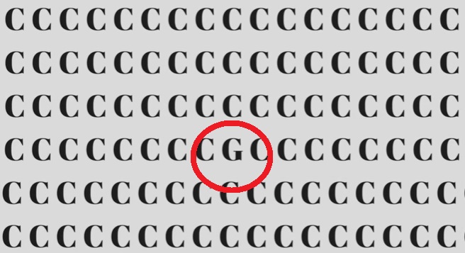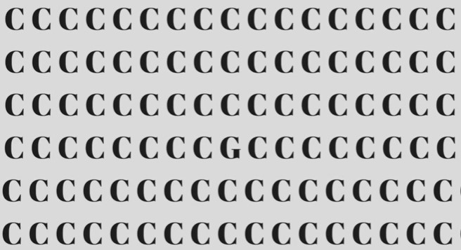 The letters C and G follow a similar pattern and therefore detecting the letter G within a series of letters C is difficult at first glance.