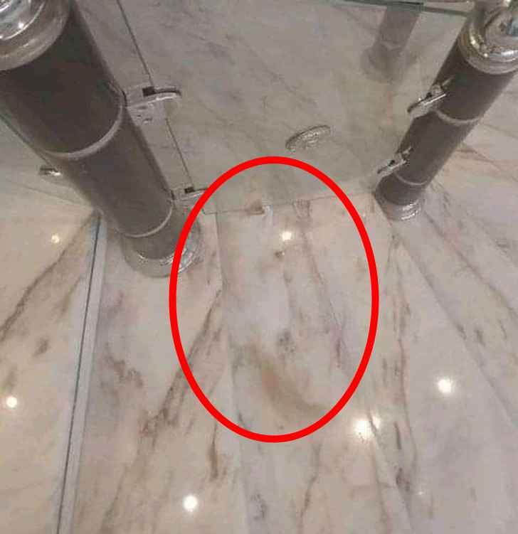 The cat can be spotted sitting on the staircase, it’s location is marked by a circle.