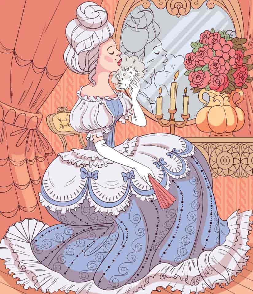 The image shared above shows an aristocratic lady getting ready in front of a mirror.