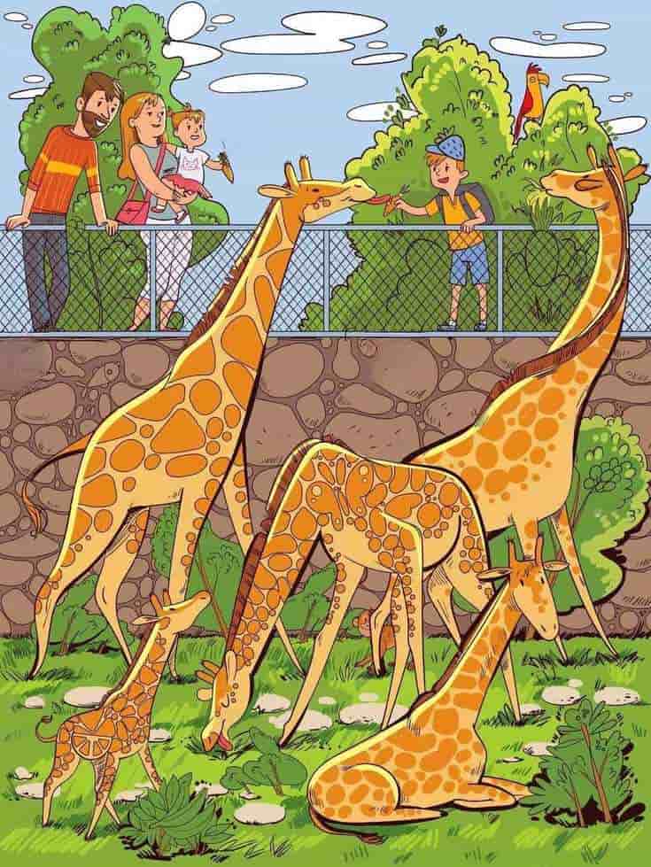 The image shared above depicts a zoo scene in which a family of giraffes can be seen.
