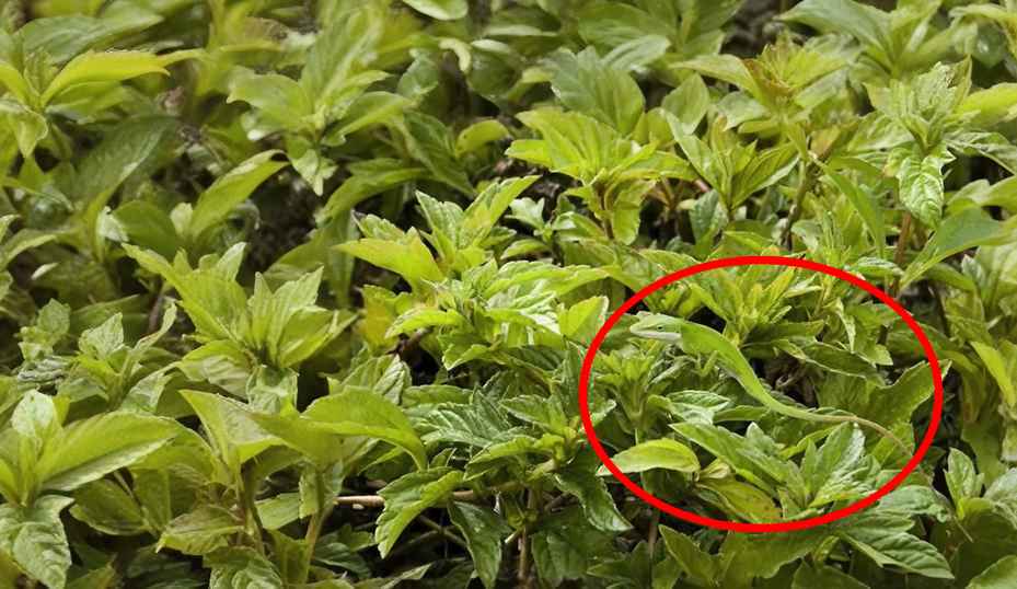 The lizard can be seen on the right side of the image; it is bright green in colour, thereby blending perfectly with the leaves, making it difficult to spot at first glance.