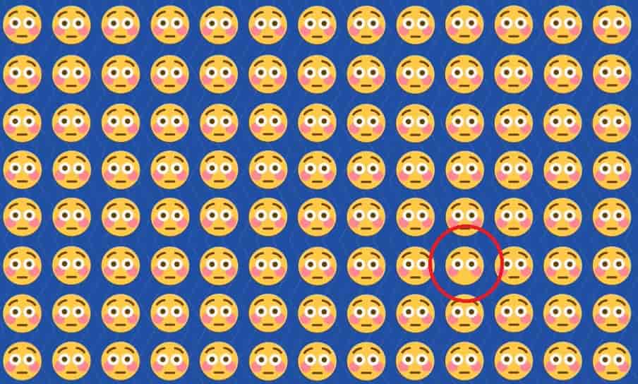 The image shared above depicts emojis with flushed faces. Among the flushed face emojis, there is a single emoji that is different from the others and you have 5 seconds to find out the odd emoji.