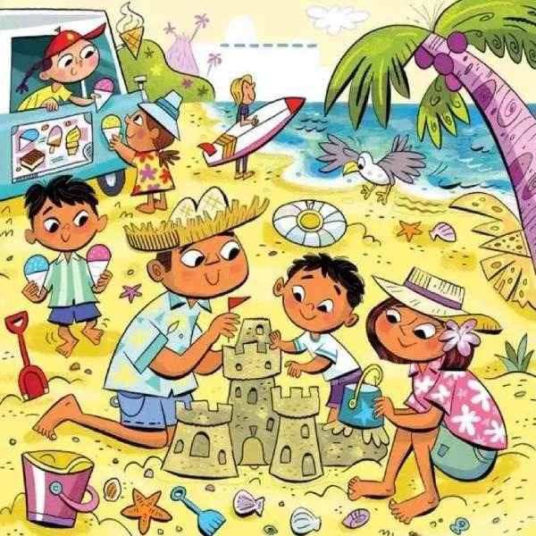 The image shared above depicts a beach scene where a family can be seen enjoying their time on the beach.