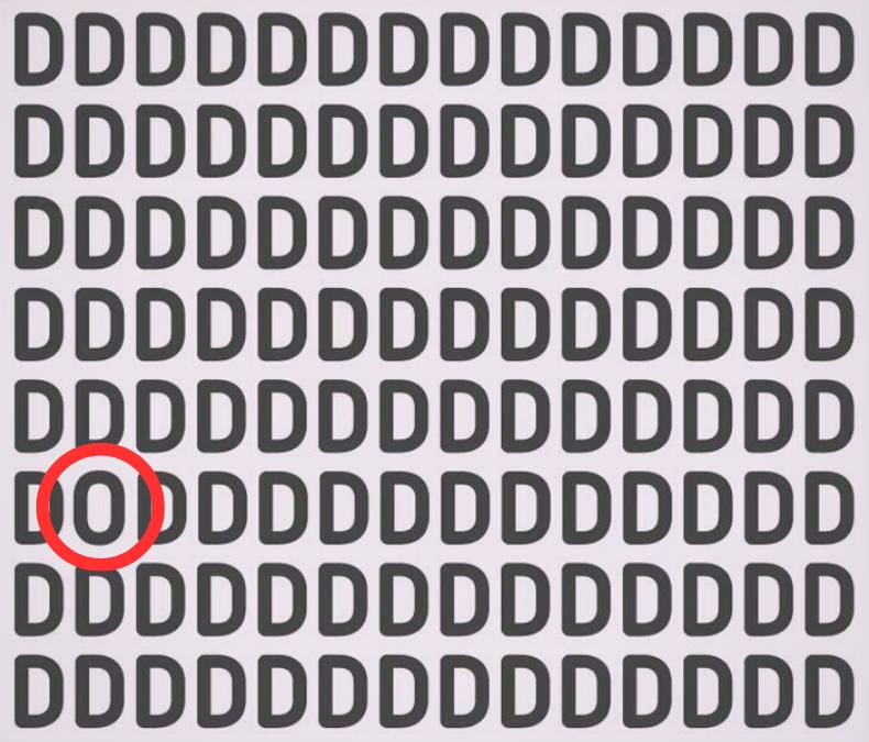 The image above shows the letter D in 8 rows and 14 columns. Among the Ds is also hidden the letter O. Can you spot the letter O in the given time?
