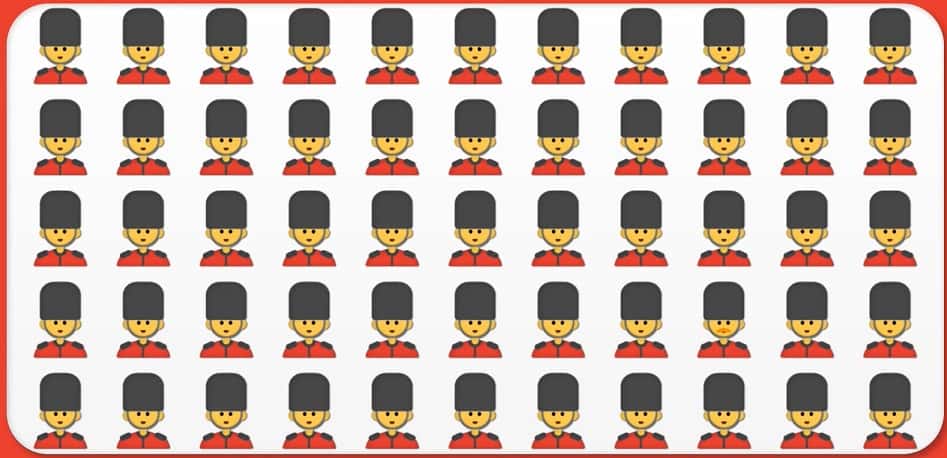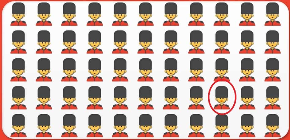 Look carefully at the image, scan all the areas, and see if you can spot the odd royal guard quickly.