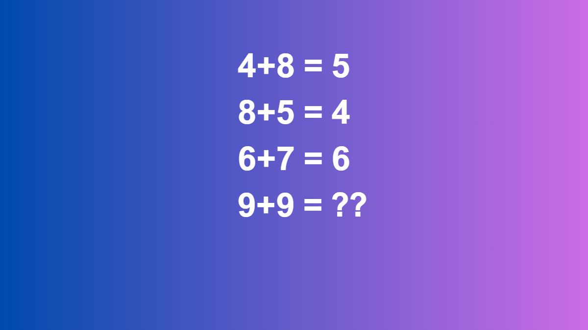 Similarly, following the same pattern, the missing value of 9+9 is found to be 9.