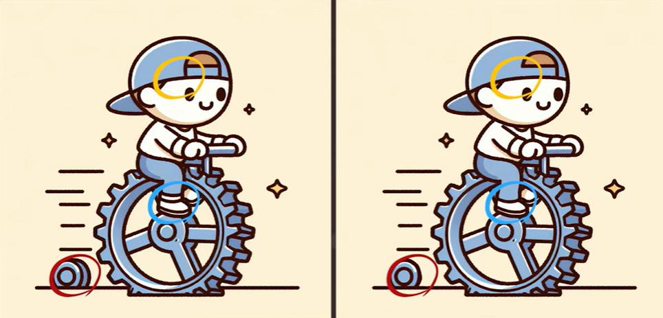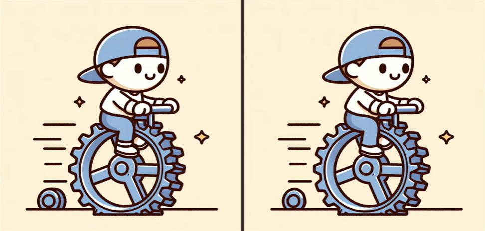 The image above depicts two identical pictures where you see a boy riding a unicycle. Although the images are identical, there are 3 differences between them. Can you find them in 9 seconds?