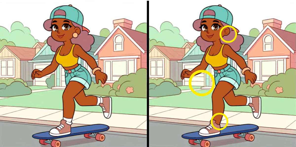 Time’s up. Were you able to spot all of the differences in the picture within 9 seconds? Congratulations to those who were able to identify the differences between the two pictures in the allotted time. If you failed to spot 3 differences between the two skateboarding pictures within 9 seconds, then you can scroll down to see the solution.