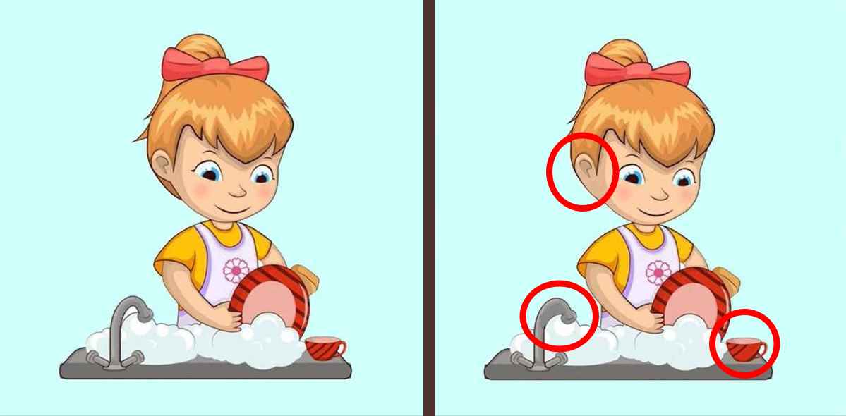 In the illustration shared above, you can see pictures of a girl washing dishes.