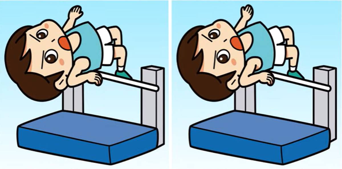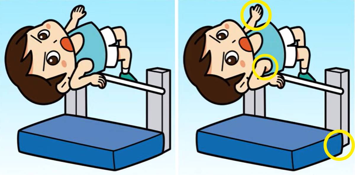The image above depicts two identical pictures where you can see a gymnast at the ground. Although the images are nearly identical, there are 3 differences between them. Can you find them all in 15 seconds?
