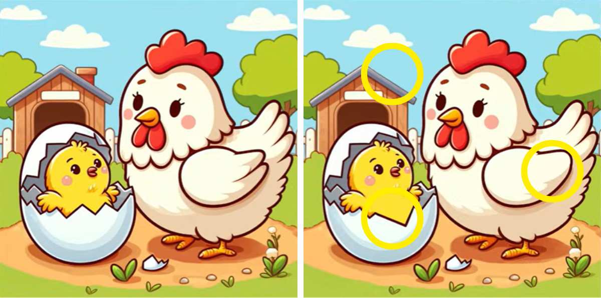 Time’s up. Were you able to spot all of the differences in the picture within 12 seconds? Congratulations to those who were able to identify the differences between the two pictures in the allotted time. If you failed to spot 3 differences between the two hen and hatchling pictures within 12 seconds, then you can scroll down to see the solution.