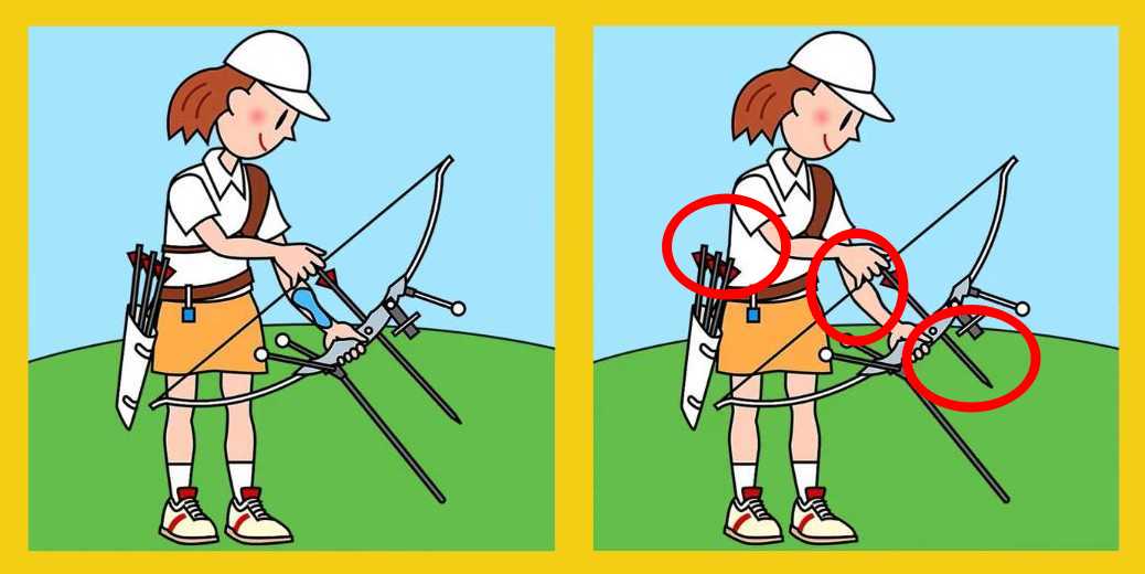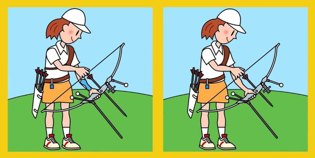 This spot the difference challenge features two identical pictures of a lady practising archery. Although the two images look identical at first glance, they are not. There are three differences between the two pictures.