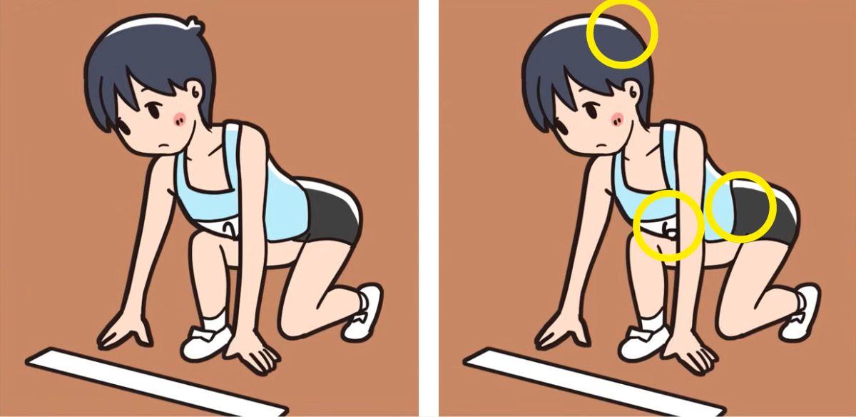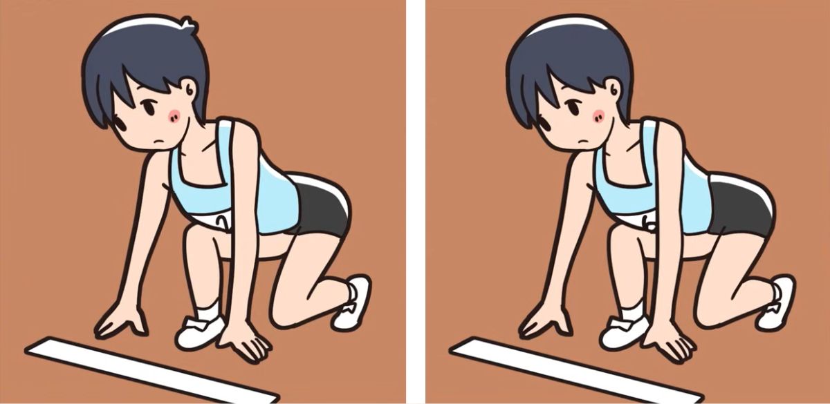The image above depicts two identical side-by-side pictures where you can see an athlete gearing up for a marathon. The runner is in the starting position, as evident from her stance. Although the images are nearly identical, there are 3 differences between them. Can you find them all in 11 seconds?