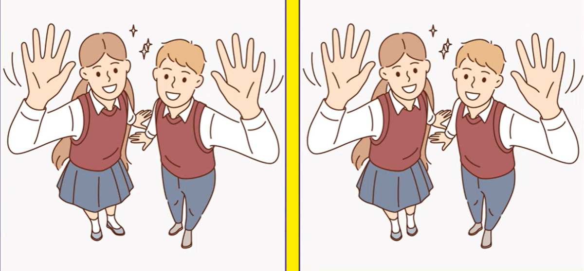 The image above depicts two identical side-by-side pictures where you can see two school children taking a selfie. The boy and the girl are in their uniforms and waving at the camera. Although the images are nearly identical, there are 3 differences between them. Can you find them all in 11 seconds?