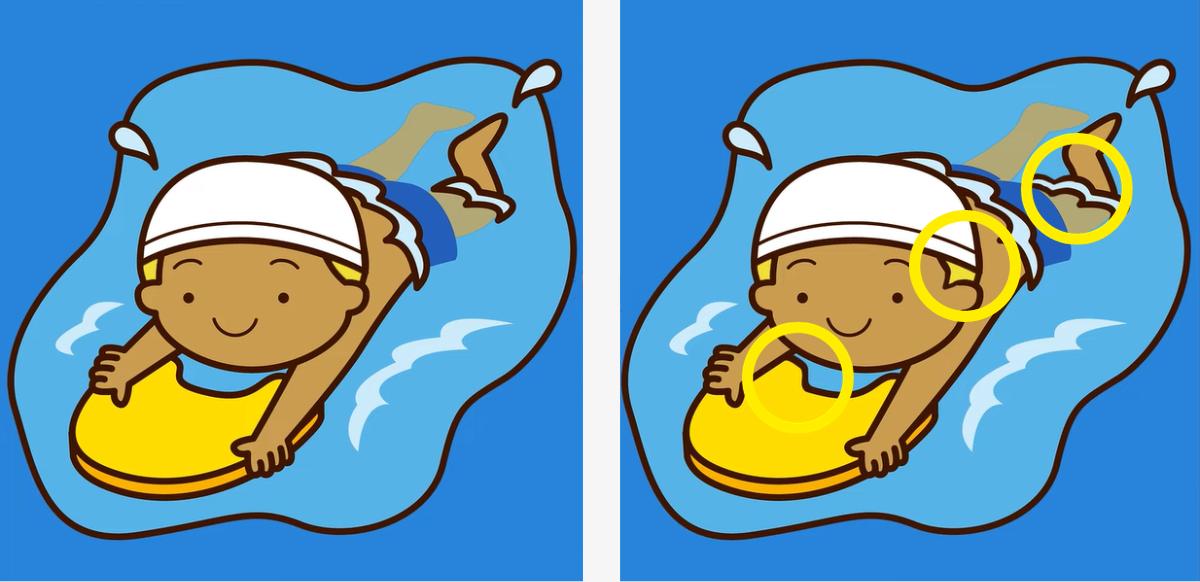 You can see two images side-by-side where you can a boy surfing on water. The two images are nearly identical, but if you take a closer look at them, you will notice that there are five differences between them. Can you find all of them in 6 seconds?