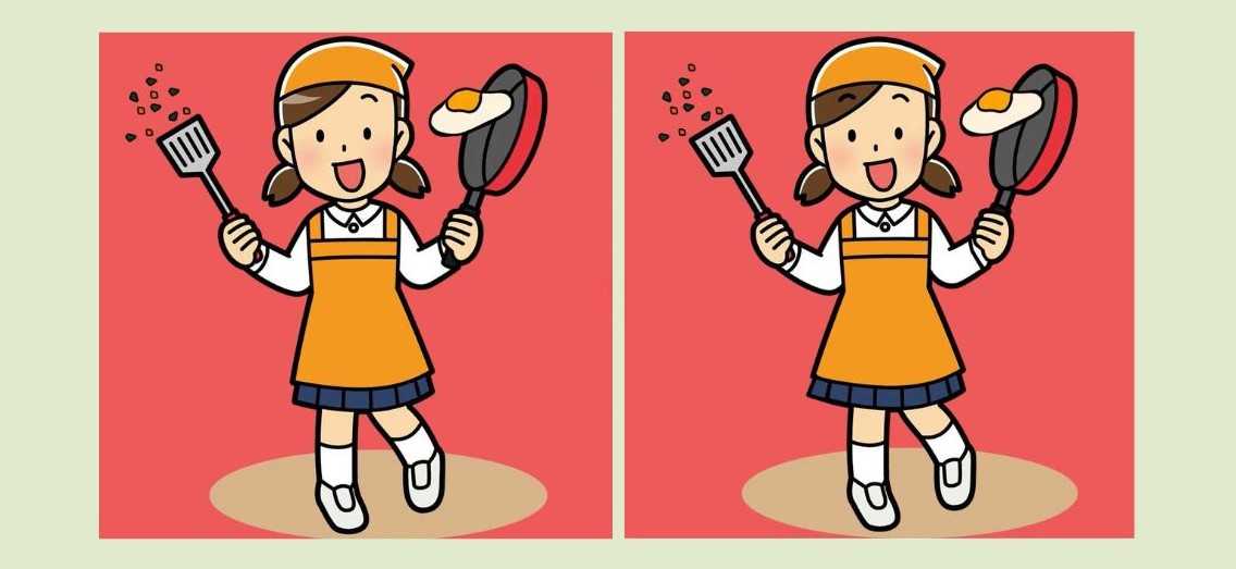 In this spot the difference challenge, two identical pictures of a girl cooking an omelette is seen.
