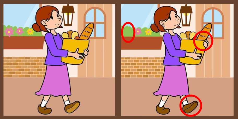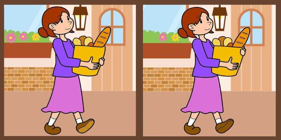 This spot the difference challenge features two identical pictures of a lady with groceries. Although the two images look identical at first glance, they are not. There are three differences between the two pictures.