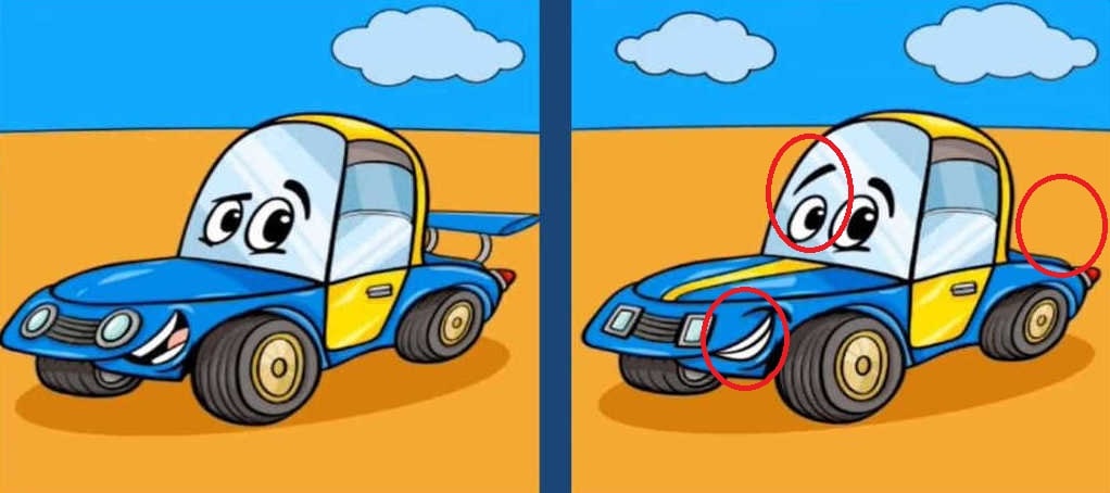 The image shown above depicts two cars in yellow and blue. The two pictures look almost identical at first glance.