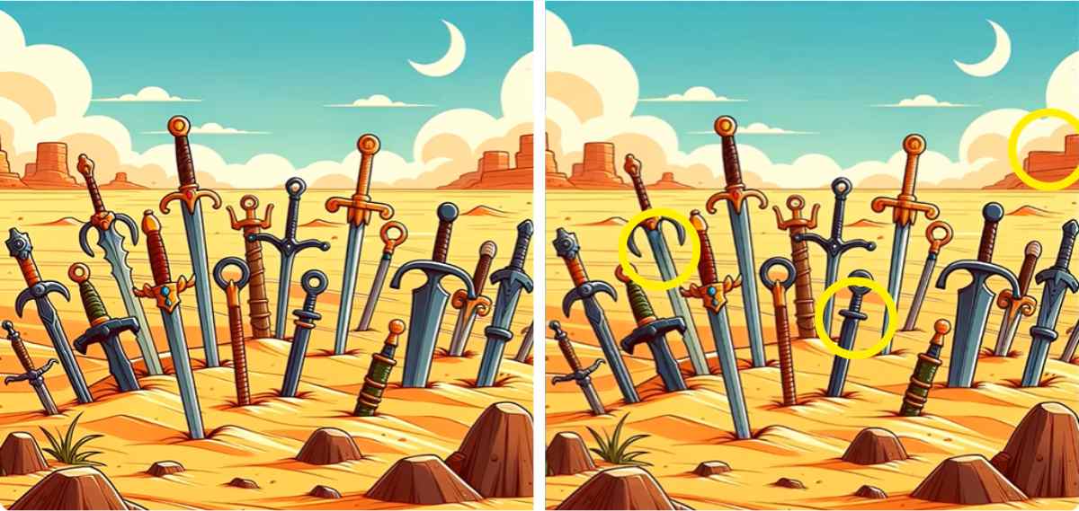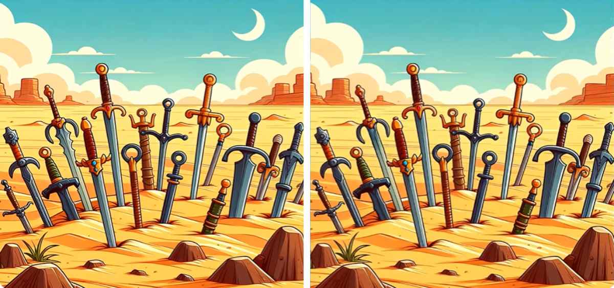 The image above depicts two identical side-by-side pictures where you can see the view of a battleground. Although the images are nearly identical, there are 3 differences between them. Can you find them all in 9 seconds?