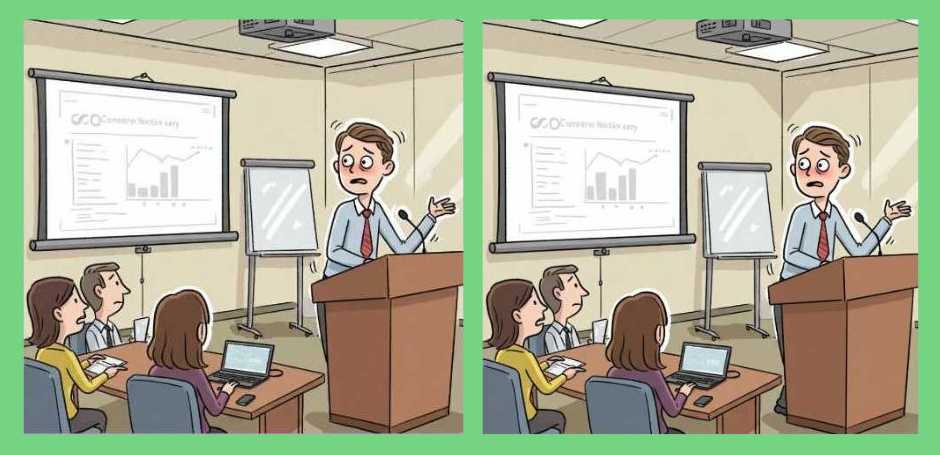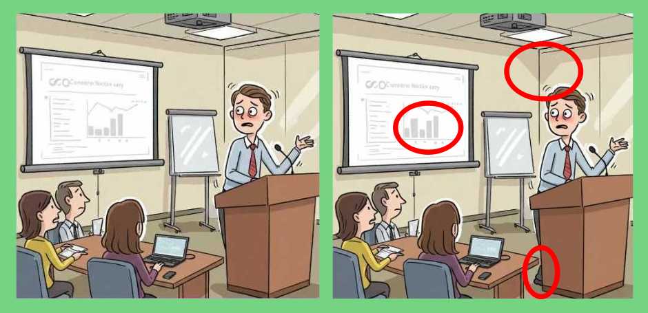 Spot the difference puzzles test how attentive you are. In today’s spot the difference challenge, only those with the excellent observation skills can spot three differences between the office presentation pictures in 19 seconds. Can you find them? Test your observation skills now!