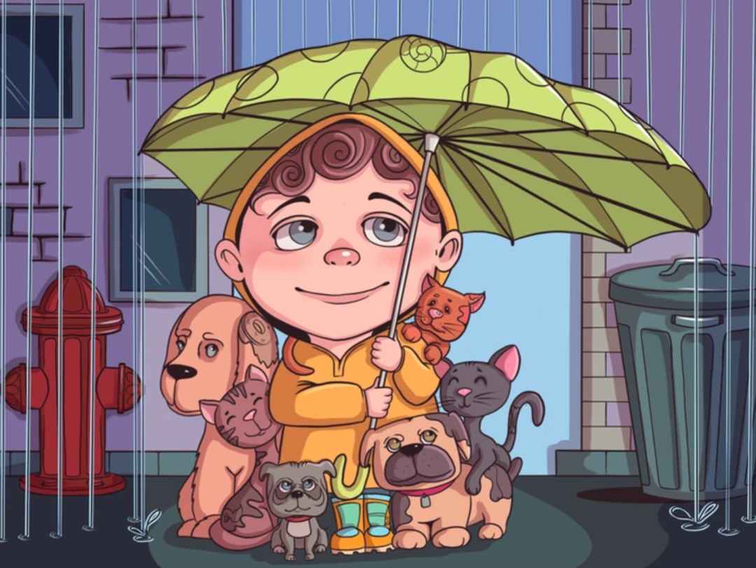 In the image above, you can see a boy holding an umbrella open in the pouring rain. Several cats and two cats are huddled together, near the boy’s feet, in hopes of avoiding the rain. The dogs in particular look quite displeased because they lost their favourite toy, a bone. The bone is hidden somewhere in this brain teaser picture puzzle. Now, it is up to you to spot the hidden bone within the time limit. As mentioned in the title above, the time limit that we have set for this puzzle is 6 seconds. So, grab your phones and set your timers, because your time starts now. All the best, guys.