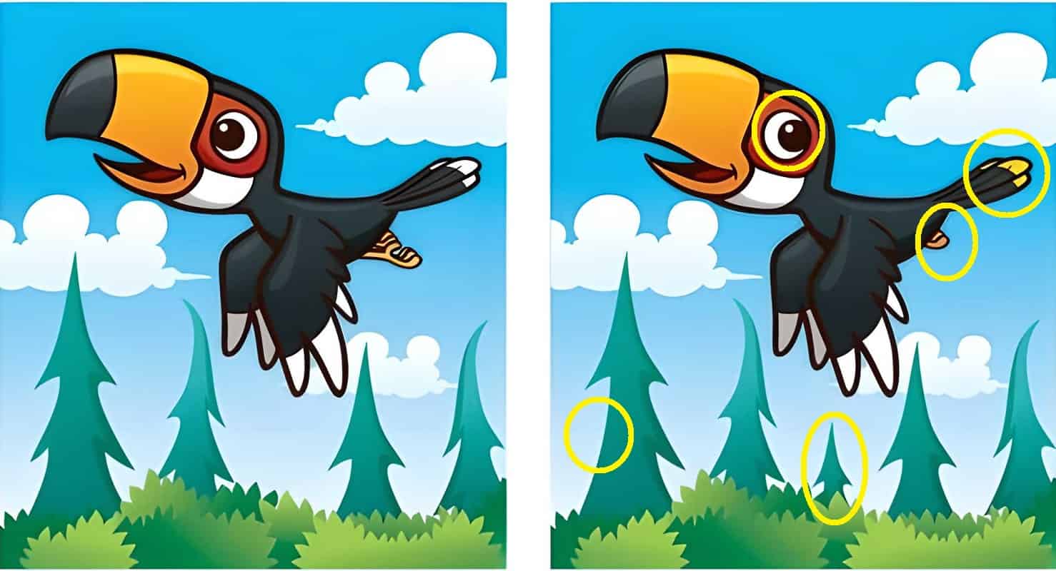 Then try spotting 5 differences between the two toucan bird pictures in 9 seconds.