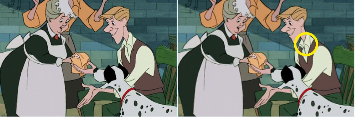 In this spot the difference game, you were asked to spot one difference between the two Disney's 101 dalmatians images in 8 seconds. The man's collar in the two images is different. Here is difference highlighted between the two images: