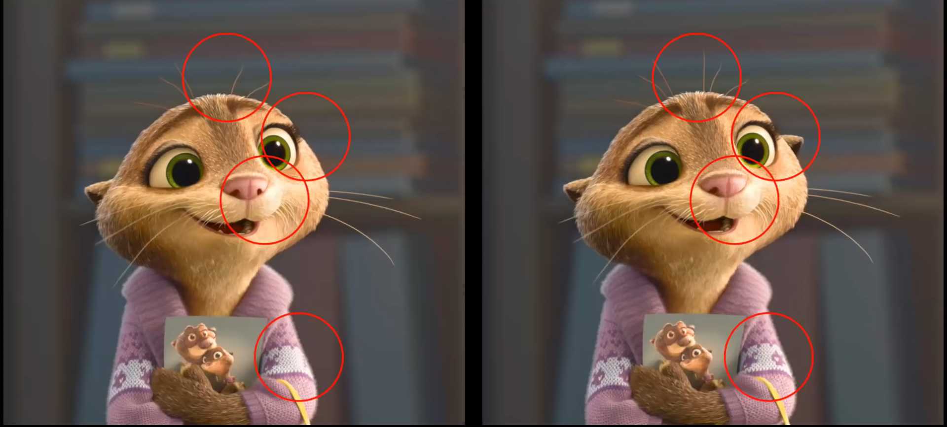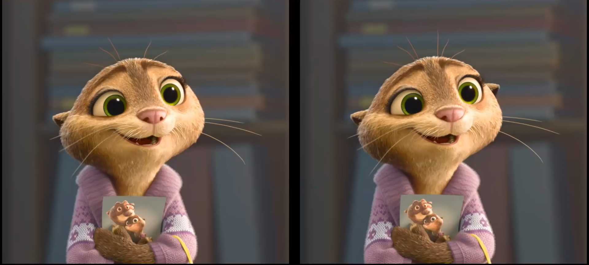 The image shown above depicts two identical pictures where you can see Mrs. Otterton, the adorable otter from the animated movie Zootopia. Mrs. Otterton is carrying a picture in her arms.