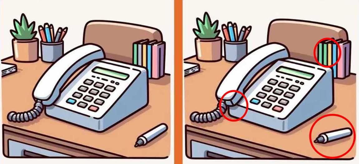 Can you spot three differences between the office desk pictures in 17 seconds?