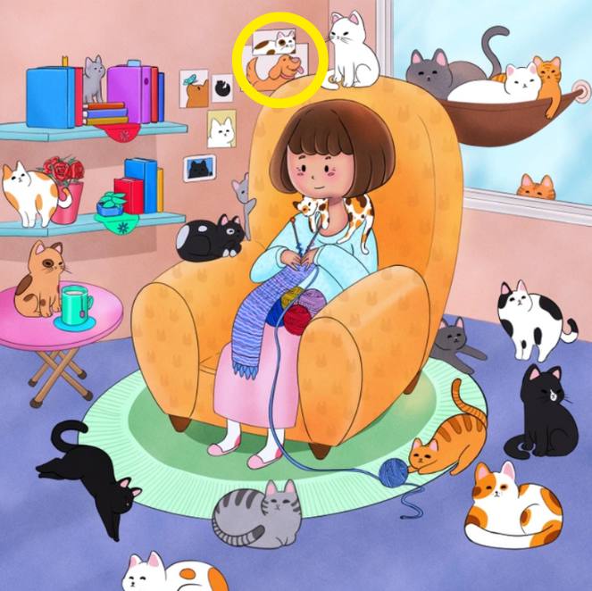 Time’s up. Were you able to spot the dog hidden among the cats within 5 seconds? Scroll down to see the solution.