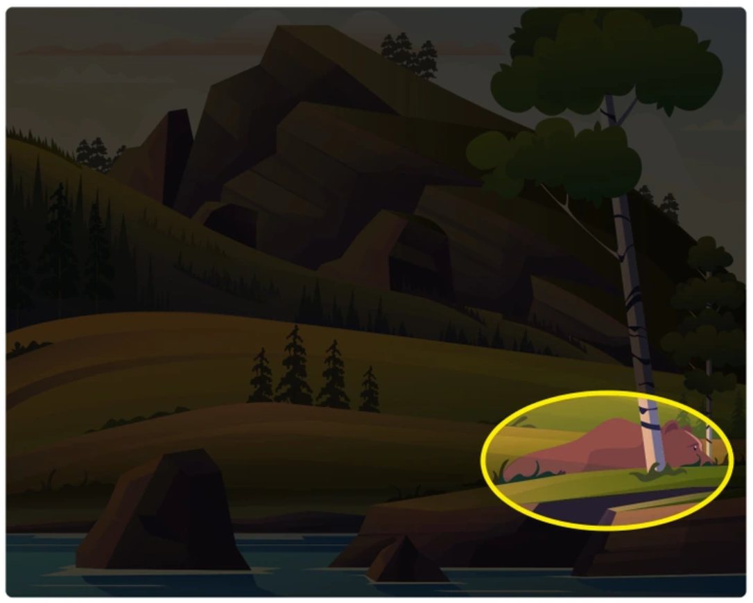 In this brain teaser picture puzzle, you had to spot the bear hidden in the landscape within the time limit. Here is the hidden animal: