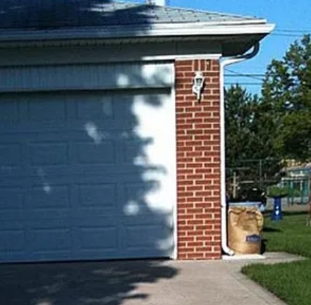 In the picture above, you can see the yard of a house. You can see a white garage door with a brick facade. There is a black garbage bag to the left of the door. Now, there is a man hidden in this optical illusion puzzle. Will you be able to spot him? As usual, we have a time limit for this optical puzzle as well. You have 5 seconds to spot the hidden man. Grab your phones and set your timers. Your time starts now. All the best.
