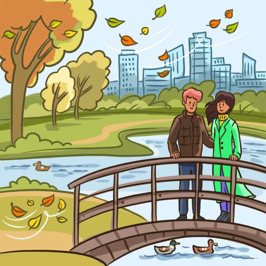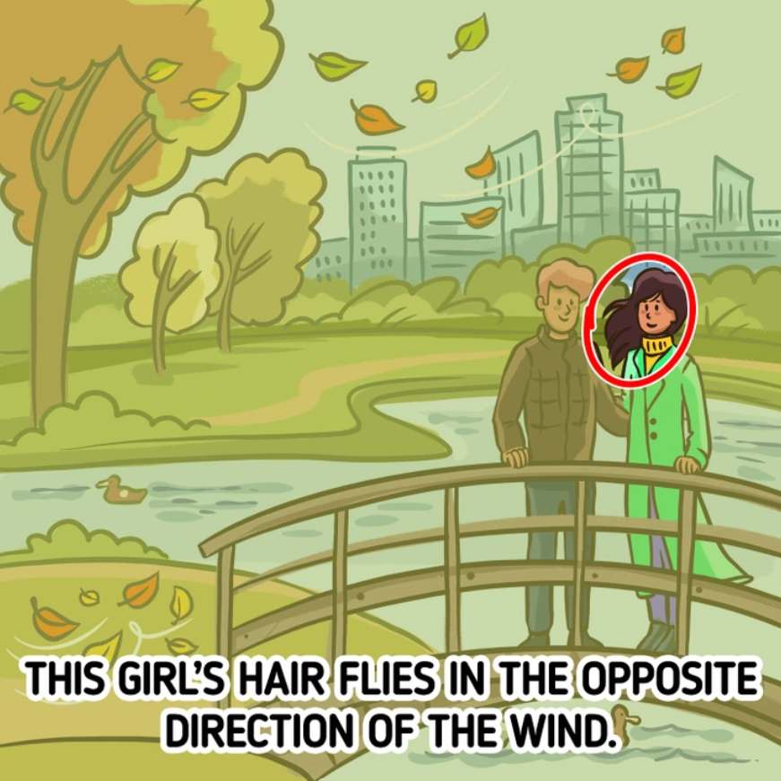 In the picture puzzle above, you can see a couple standing in a park. There is a small bridge over the lake, and the couple is standing there. You can also see ducks swimming in the background. At first glance, everything looks tranquil and perfect. However, upon taking a closer look, you will find that there is a mistake present in this picture puzzle. Can you find out what it is?