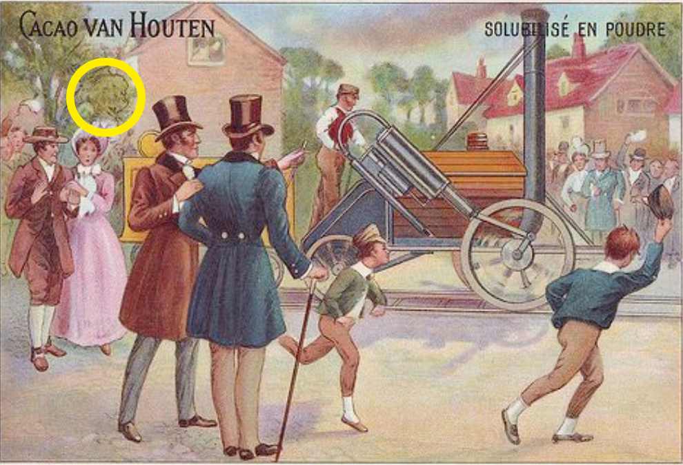 In the image above, you can see a commotion going on in the street. The scene in the image is from the 1950s. There are noblemen and noblewomen on the street, along with some children. The nobleman clad in the maroon overcoat, grey slacks, and top hat looks stressed. His son was playing with the other children on the street, but he suddenly went missing. The nobleman is looking for his son, and so are the other people on the street. Can you spot the hidden boy?