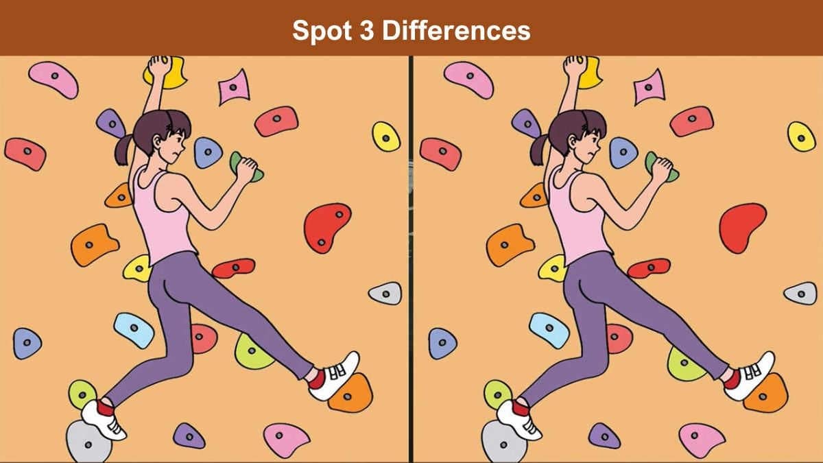 Spot 3 differences between the girl climbing rock pictures in 10 seconds!