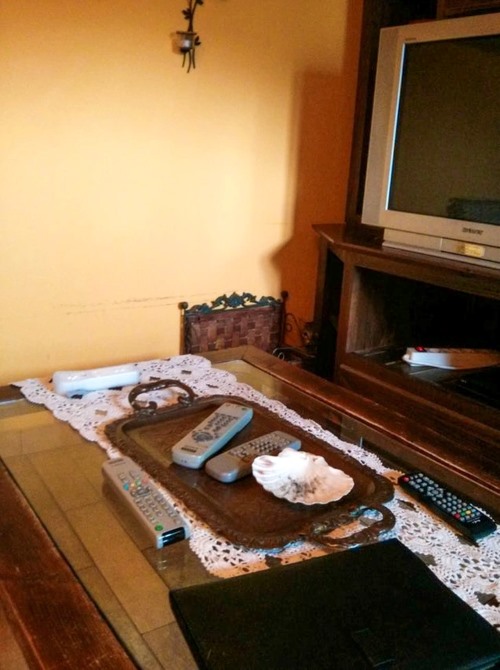 So, are you excited to know where that cat is hidden in the bedroom? Okay, observe very carefully on the left side of the television table; look in the shadow of the table. There is a cat; there she is hiding.