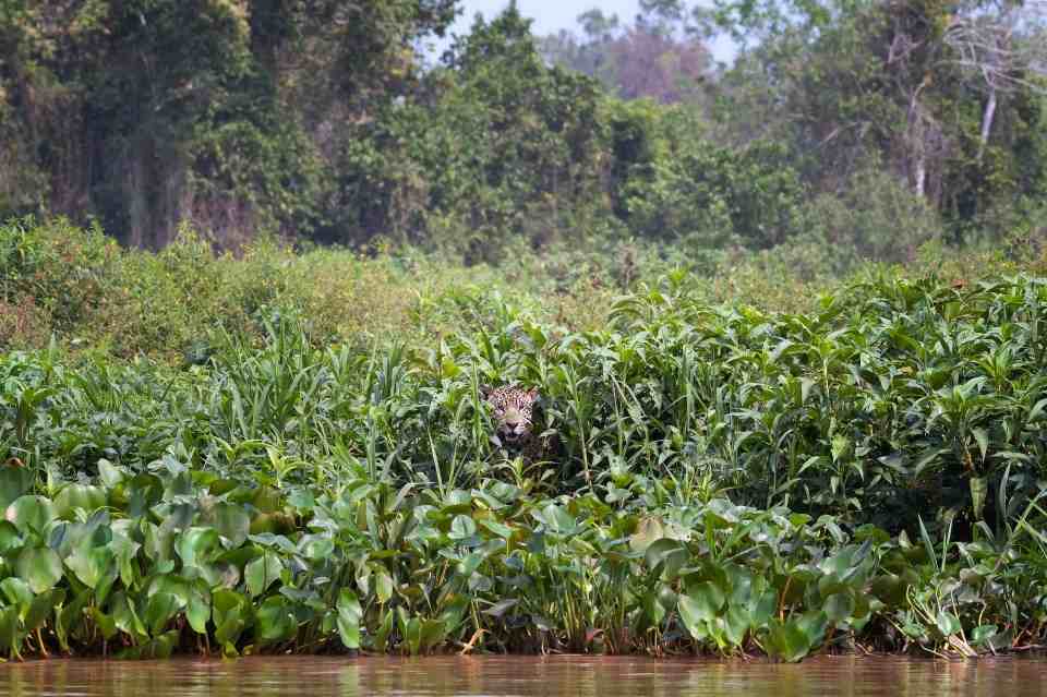 Also spotted in this picture is a jaguar who is seen lurking from the grass, while this one is easy to spot, there is a second jaguar which is hard to spot.