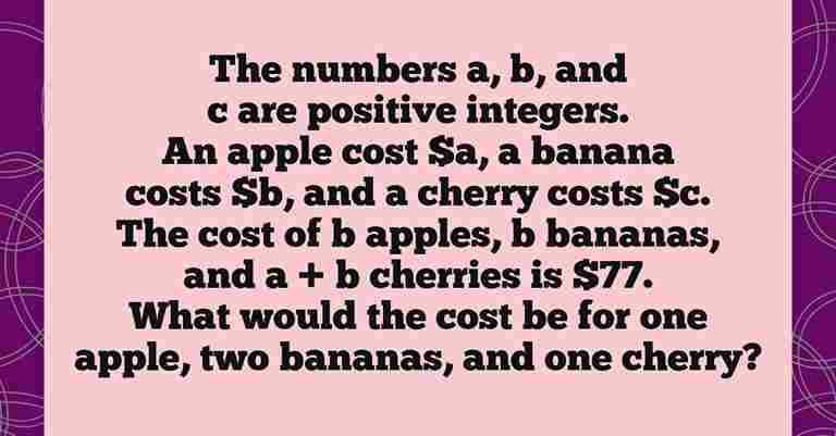 An apple costs $a, a banana costs $b, and a cherry costs $c.