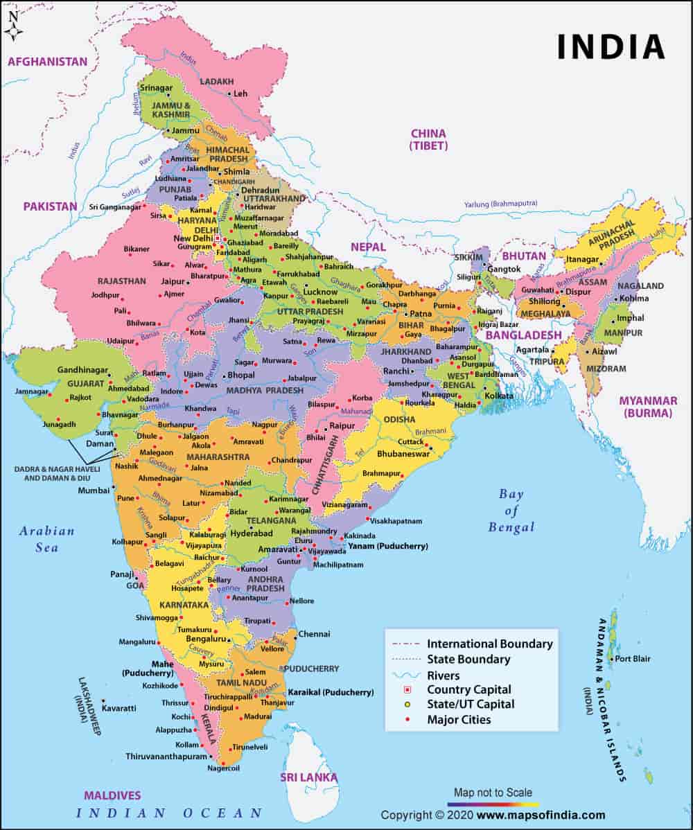 भारत में उत्तर से लेकर दक्षिण और पूर्व से लेकर पश्चिम तक यदि कुल राज्यों और केंद्र शासित प्रदेश की बात करें, तो 28 राज्य और 8 केंद्र शासित प्रदेश हैं।ॉ